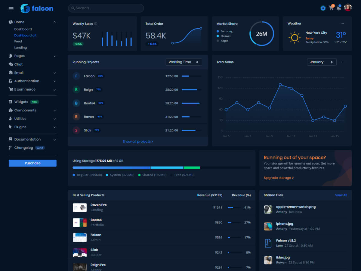 Built on top of Bootstrap 5, super modular Falcon provides you gorgeous design & streamlined UX for your WebApp.